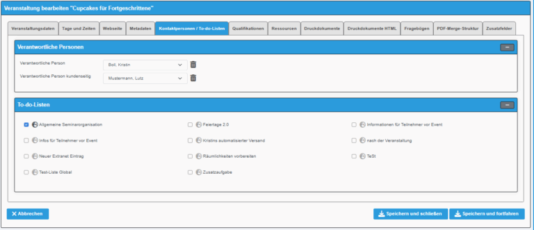 Da dieser Eintrag in der To-do-Liste „Allgemeine Seminarorganisation“ erstellt wurde, wird diese To-do-Liste nun in der Veranstaltung hinterlegt.