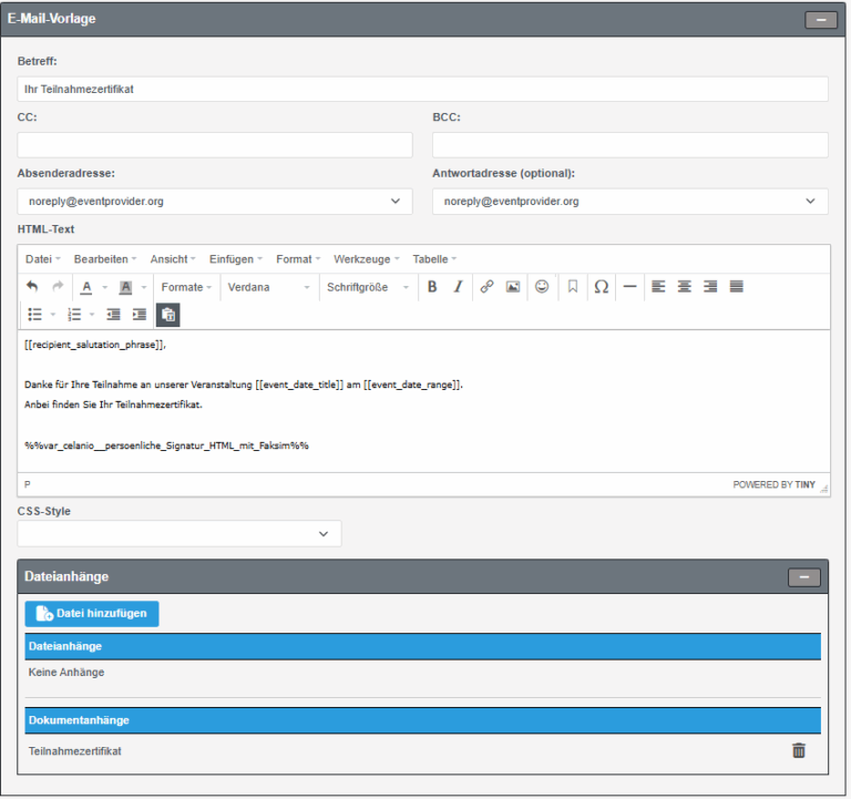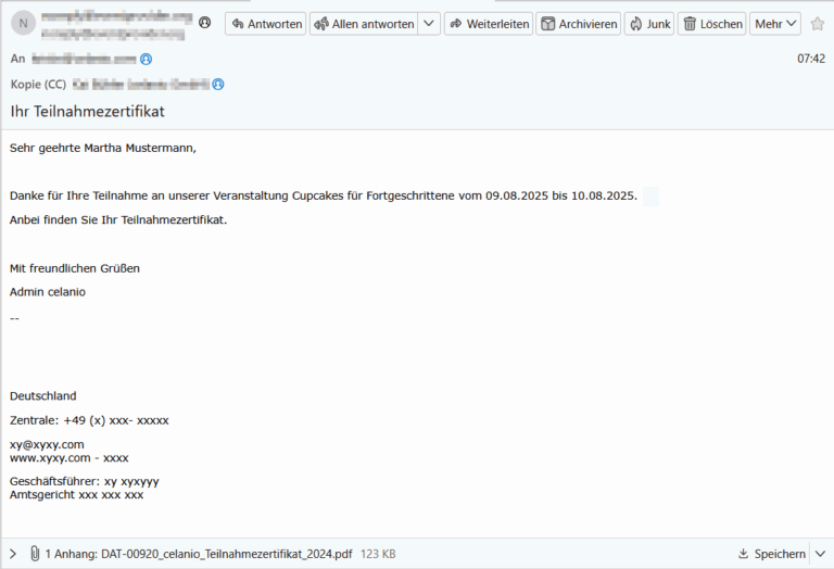 Die gute Nachricht: Nein, muss es nicht. Mit einer Seminarverwaltungssoftware wie celanio lässt sich der Versand teilnehmerspezifischer Dokumente ganz einfach automatisieren. Einmal sauber eingerichtet, laufen diese Prozesse im Hintergrund – zuverlässig, fehlerfrei und deutlich entspannter als per Hand.