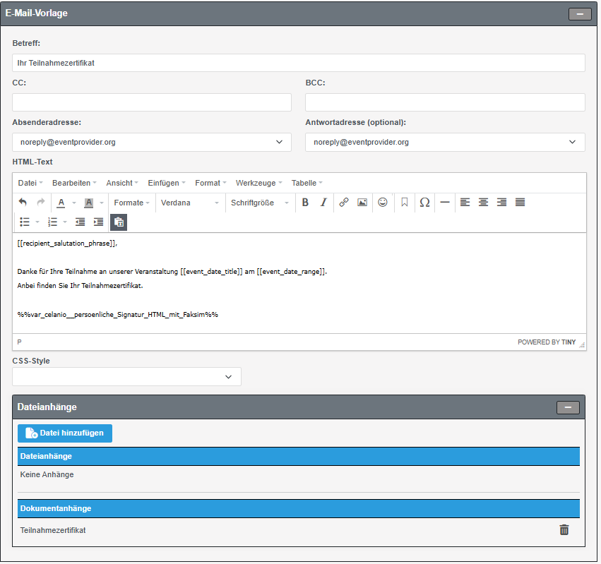 Die Einstellungen hier kannst du natürlich ganz nach deinen Wünschen anpassen. Sollen die Zertifikate eine Woche später verschickt werden? Kein Problem. Stell alles so ein, dass es deinen Prozess bestmöglich abbildet. Was du hier alles konfigurieren kannst siehst du in unserem Blogbeitrag To-do’s mit celanio verwalten.